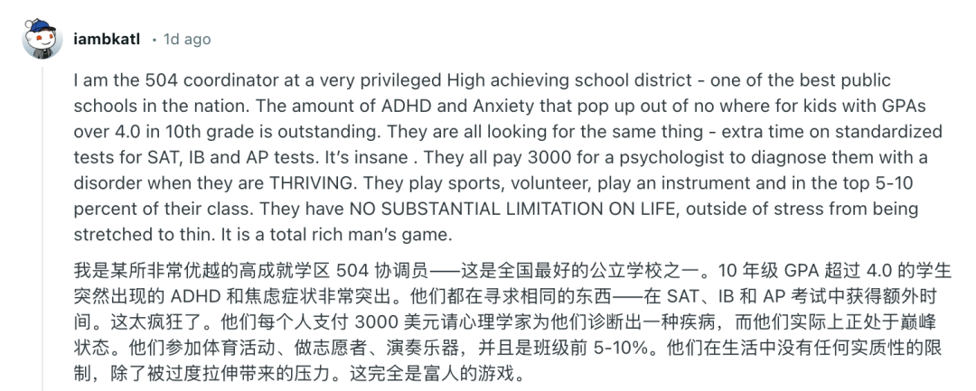 有研究表明,其中相当一部分“残疾”学生,在阅读、数学和智商测试中的表现,都拥有高于平均水平的认知,但“残疾”认证却给他们带来了更多的校园便利。